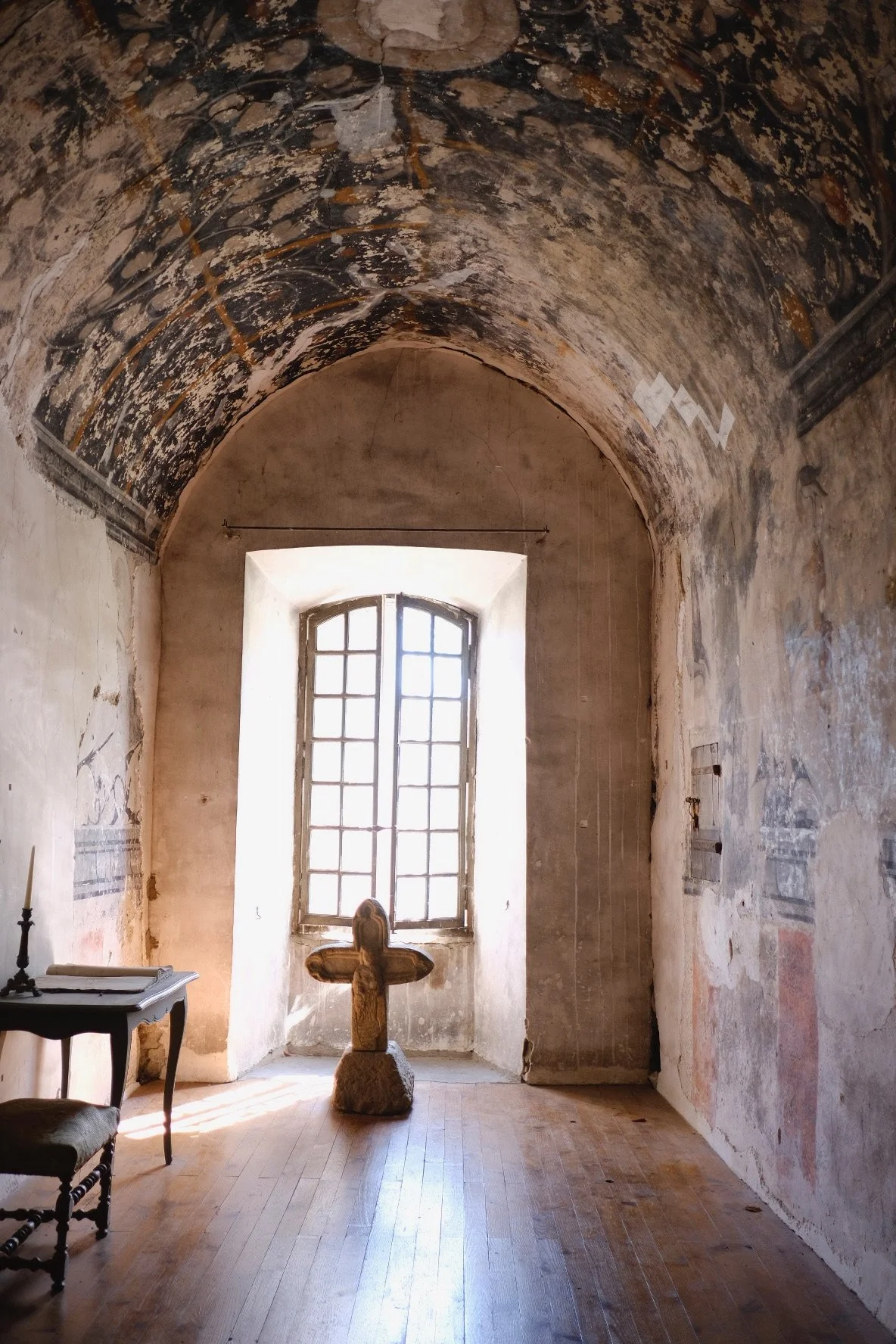 This is a space previously used for Christian worship, and is still attached to a (once a month) running church. Christian symbols and relics remain in the architecture and decoration, historically protected.